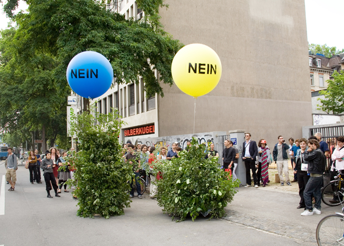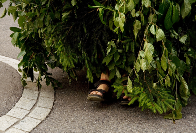 Performance, 20 minutes Kunsthof Zürich, 2005 Demonstrating bushes circling around the site. With Ariel Zumstein.